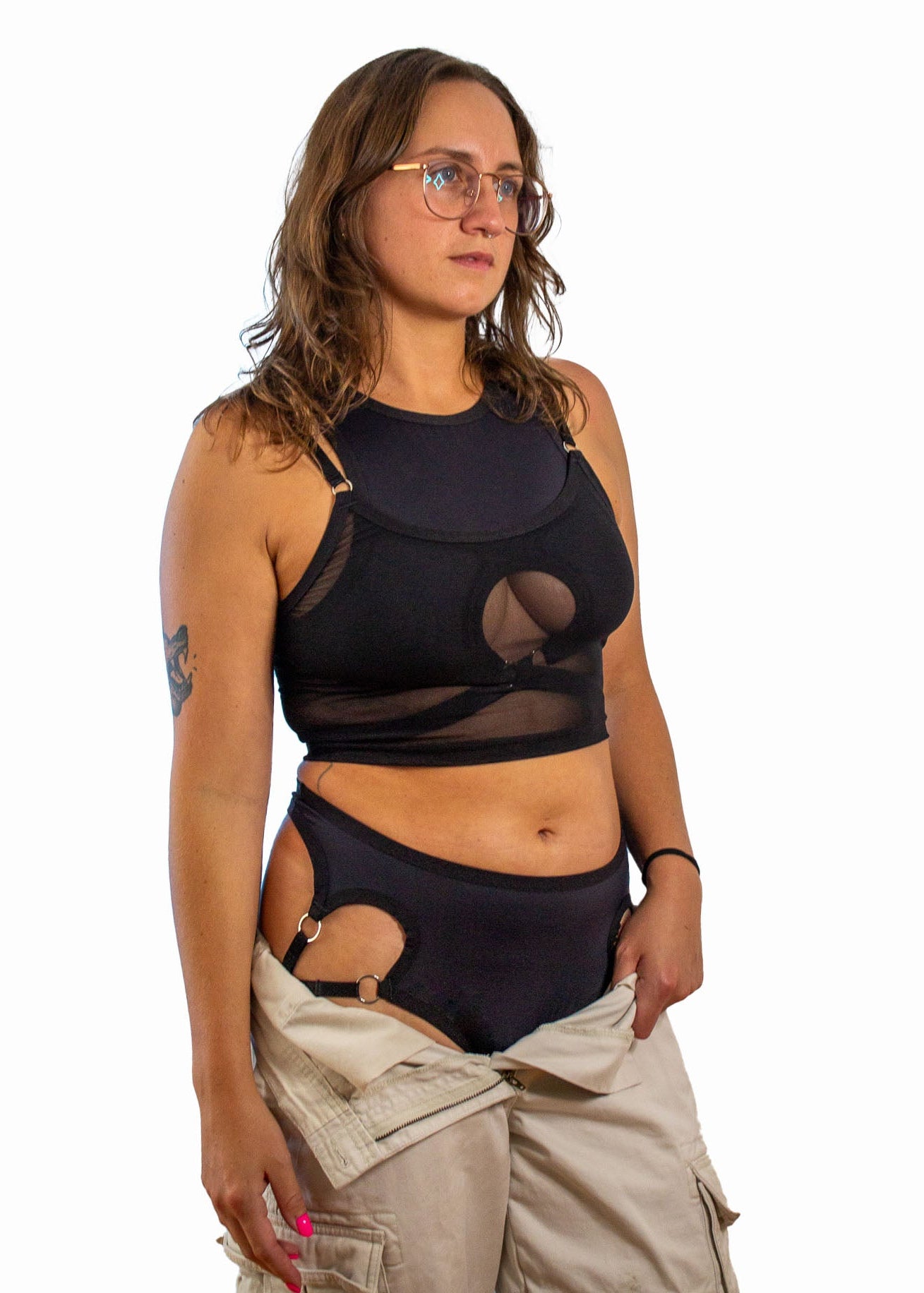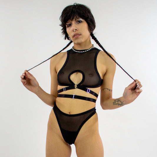 Black mesh Harness Top